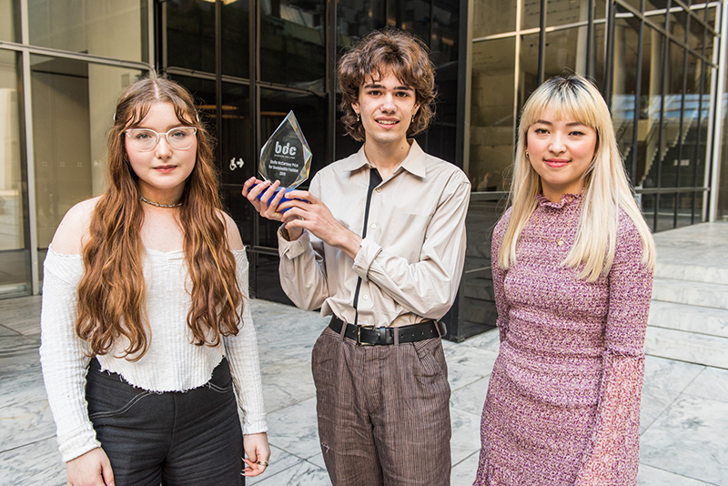 Team Flora Fur—Isabella Bruski, Advertising and Marketing Communications, and Noah Silva, Fashion Business Management—are experimenting with using milkweed and flax to create a luxurious “fur” from 100 percent plant material. On June 21, Flora Fur won the Stella McCartney Prize for Sustainable Fashion at the Biodesign Challenge Summit, an international student competition focused on the future of biotechnology.
